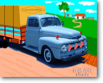 Bom, como gosto de reviver o passado e já que gosto de desenhar, aproveitei e fiz um desenho (montagem) de um caminhão que meu pai comprou aí de um morador de Quatá. O nosso FORD F-6 com os gomos pintados de vermelho.