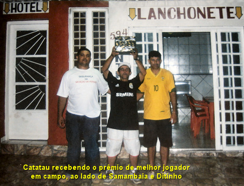 Eder , o meia do MAC (ex-Portuguesa) recebendo a lembrança de melhor em campo