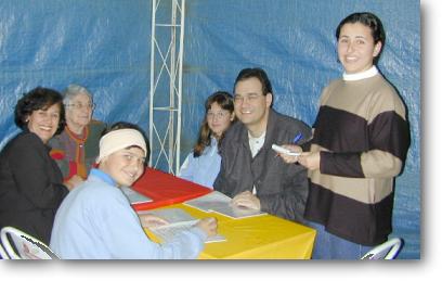 Acima, Edna Conde e sua família sendo atendida pela Eliane.