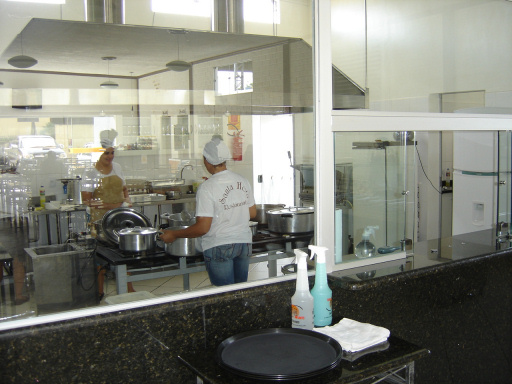 principalmente pela limpeza e a cozinha separada com vidros onde pode-se