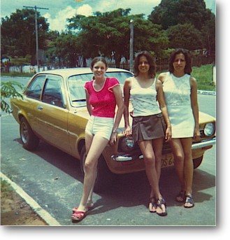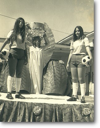 Setembro de 1970, as jovens no carro alegórico Valda, Sandra Melendez e Regina Pellini