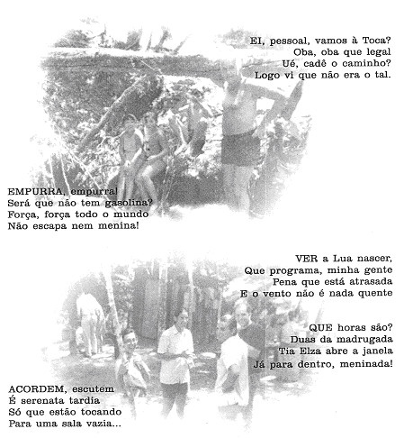 | Nessas fotos estamos em um churrasco no Rio Acima. Na foto acima, na cachoeira, estamos: Elzinha, eu e o meu irmão Fernando. O senhor ao lado é o irmão da minha mãe, Hermano. Na foto abaixo estão as minhas irmãs Ana Luiza (óculos) e a Claudia, os dois rapazes não me lembro. | ![]() |