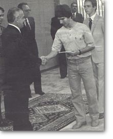 Julio, ganhador do primeiro lugar na Regional de Tupã em 1985 no Ano Internacional da Literatura recebendo do Presidente da República e também escritor e membro da Academia Brasileira de Letras, José Sarney . |
