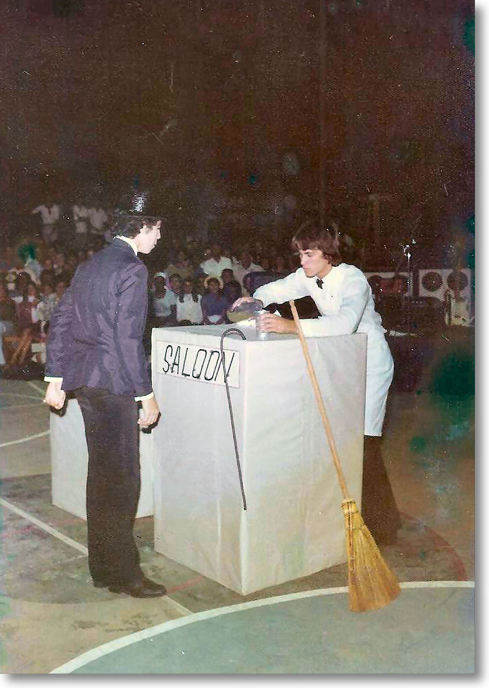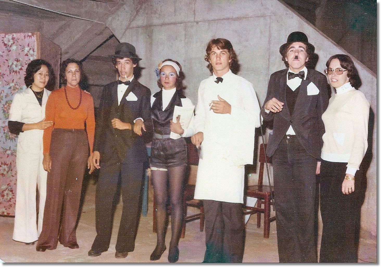 Na direção e coordenação as professoras Heloísa, Iracema Araújo,( as duas primeiras da esquerda) , e Helena Pellini, filha do saudoso Orlando Pellini, o Capitão, apaixonado por pescaria, pássaros e briga de galo, na época em que a maldade não existia . Na caracterização o casal Carlos Eduardo Palazzi, cantor, seresteiro e percussionista , e a incrível sempre alegre e espevitada Izilda Liberato ,filha do sr. Gregório, neta do sr. Liberato que tinha um sítio perto do campo da aviação e que fazia uma festa junina como ninguém pode esquecer. De garçon, Glaucio Conde, e o sempre engraçado por natureza e altíssimo astral Mário Sérgio Pires Pinheiro, o Oncinha, filho do velho Goiaba, grande tocador de Saxofone.