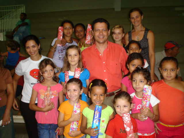 A entrega foi realizada no ginásio de esportes, na sexta-feira, dia 22 de dezembro, às 9h, pertinho do Natal. A cada presente entregue, um sorriso enorme de alegria observou-se nos rostinhos das nossas crianças que puderam contar também, com a presença do papai-noel que, lá esteve com seu sininho e seu Ho! Ho! Ho!