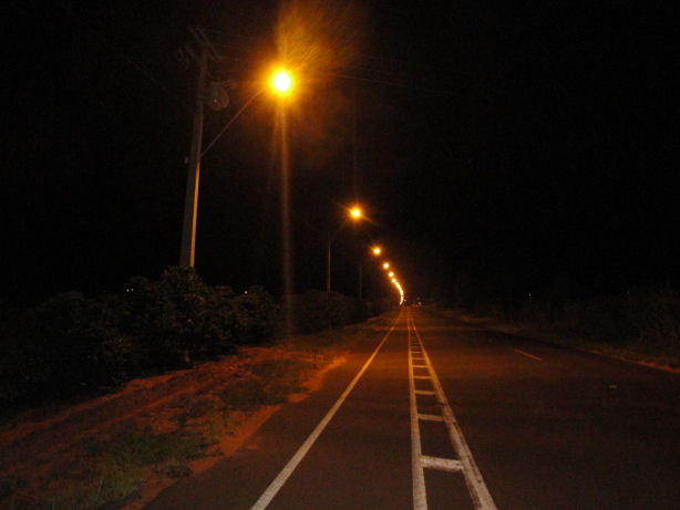 a noite no acostamento (pista de caminhada) da rodovia de quase dois quilômetros;