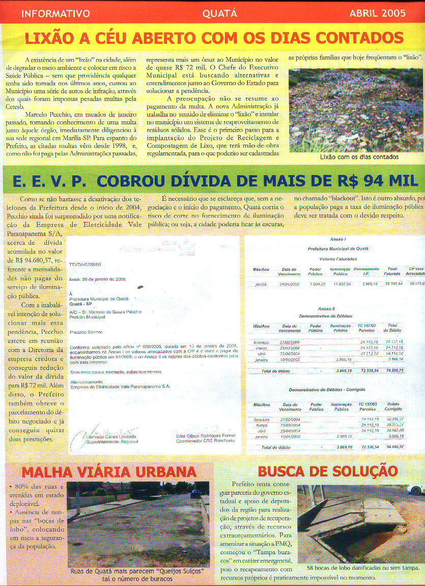 Comunicado da Prefeitura de Quatá - Prefeito Marcelo Pecchio feita ao povo de Quatá Abril de 2005 - Página 2