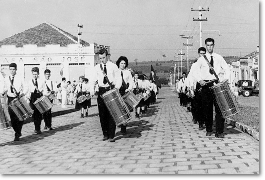 7 de Setembro e estava todo mundo lá, esperando o desfile cívico. Quando criança não via a hora da fanfarra passar e mais alguns anos era a minha vez de participar. Era só o "seu Lelo" chegar na porta da classe avisando do ensaio da fanfarra e era uma festa , e os rapazes saíam da sala de aula dando risada inicialmente por dois motivos, um porque estaria "matando" as duas últimas aulas e pela vantagem sobre os que não participavam da mesma e que teriam que assistir, principalmente as meninas. Hoje não entendo aquele lado meio machista da fanfarra, porque as meninas não participavam ? Chegando no ensaio se esquecia tudo e fazíamos tudo com carinho e é por isto que o resultado final era tão bom.