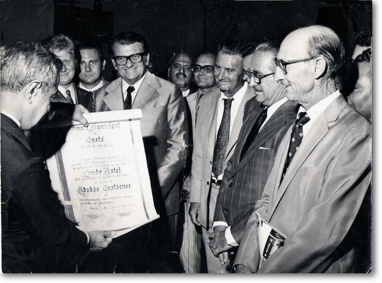 Aconteceu em 13 de Março de 1975, quando o então governador Laudo Natel recebeu das mãos do presidente da Câmara de Vereadores de Quatá, o sr. José Pazianotto , o título de Cidadão Quataense. Uma comitiva representada pelo prefeito de Quatá, Sifrido Averoldi, o Bidi, Benedito Dalla Pria, Manoel Sureto, Wolney Dalla Pria, o Alemão, Devaner Masi, visitaram o Palácio dos Bandeirantes em São Paulo para uma reunião e entrega do título.