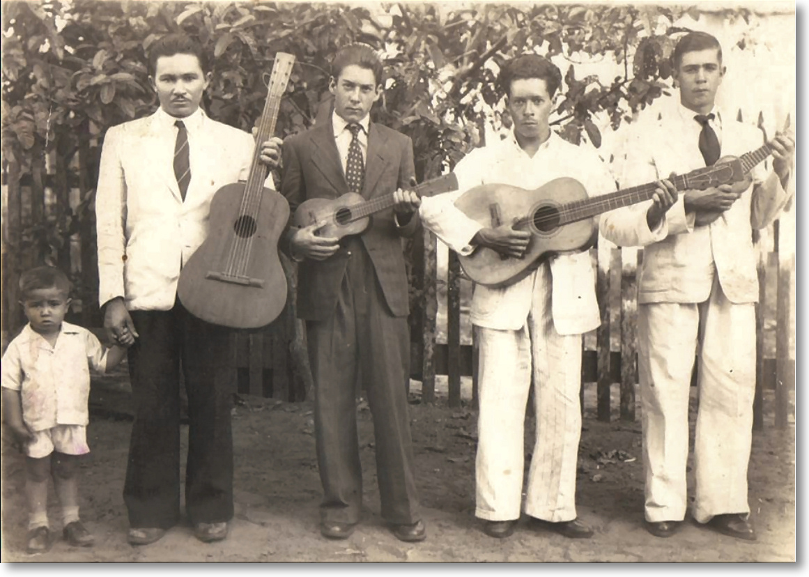 Dois violões , dos cavaquinhos e um monte de historica para contar. Esta foto é de 1947 onde aparece o sr. Francisco Alencar , Seu Chiquinho da Estação, que em sua vida sempre gostou de tocar e cantar.