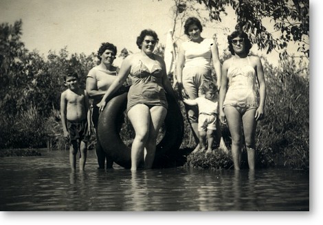 amizades e dos bons tempos. Sr. Toninho deitado .Atrás suas filhas.