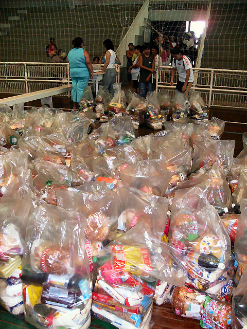 Os produtos que integraram as cestas foram: panetone, refrigerante, arroz, feijão, macarrão, óleo, frango entre outros.