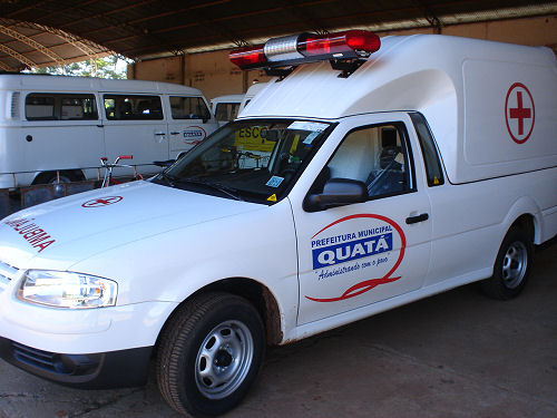 A Prefeitura de Quatá acaba de comprar nova ambulância/saveiro, no valor de R$ 41.192,00 para melhor atender a comunidade que utiliza os serviços de saúde de nosso município. Com essa mais recente aquisição, o Departamento de Saúde conta agora, com 5 ambulâncias.