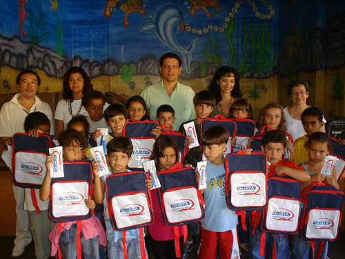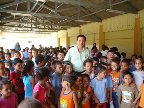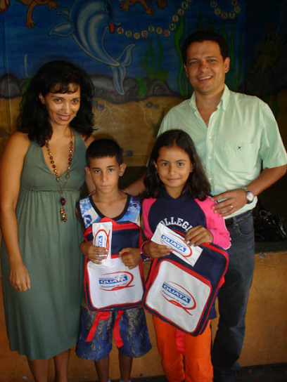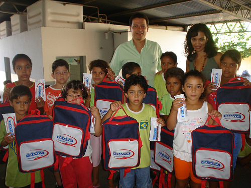 Marcelo Pécchio entrega mochilas e estojos com escova e creme dental as crianças das escolas municipais