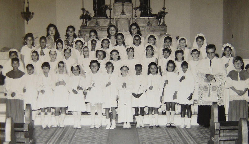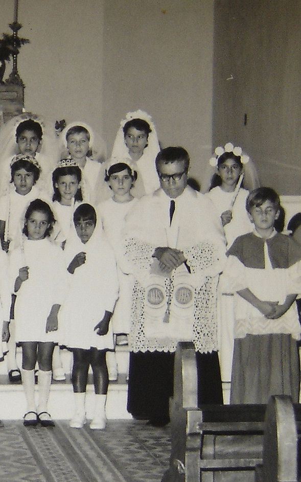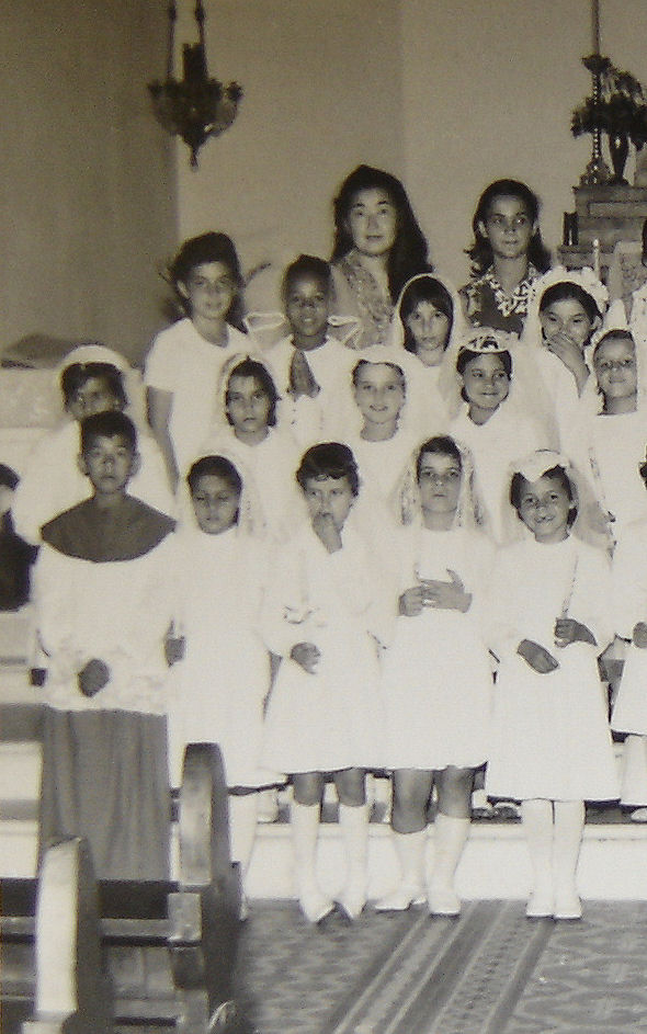 Fileira de baixo: coroinha Julio Cesar , ?, Nirley, Kiki, ?