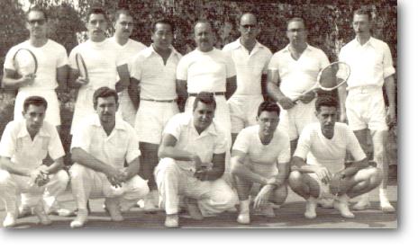 Falem a verdade, classe é classe, e em 1955 isto não faltava aos atletas deste nobre esporte que foram os representantes da fundação do Quatá Tenis Clube. Veja quem pertenceu a primeira turma do torneio de inauguração em 55. Em pé, da esquerda para a direita: Ary, Ivo Gagliardi, Zé Haddad, Yoshida, João Torres, Luiz Schiavo, Fernando e Geraldo. Abaixados, da esquerda para direita: Itamar, Tinho Conde, Alberto Gil de Oliveira , Bernardo e Maistro. |