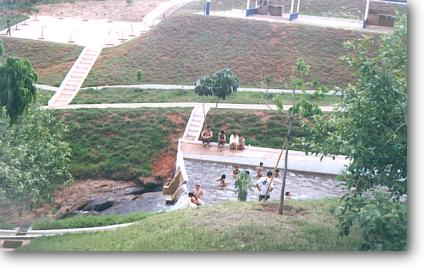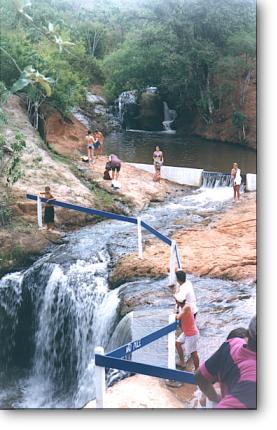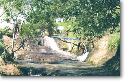 À 6 km do trevo principal de Quatá , pertencente à cidade João Ramalho, vamos encontrar um parque aquático popular ideal para a família: O Burrinho. Burrinho é o nome dado a uma bomba para aspirar líquidos, muitas vezes acionadas manualmente, ou como mostrado na figura acima acionado por uma roda d'água. Esta bomba hidráulica e estas quedas d'águas já existiam neste local há muitos e muitos anos, contudo o prefeito de João Ramalho, sr.José Roberto Pinheiro Nunes e seus vereadores aqui nesta página aplaudidos e homenageados transformaram o local em um parque aquático verdadeiramente popular , dando aos moradores de João Ramalho e cidades vizinhas mais uma opção de lazer. |