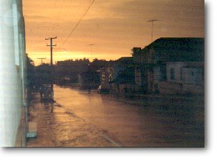 Esta foto é uma daquelas coincidências que acontecem. Tinha acabado de chover, estava anoitecendo, e Quando virei a esquina da antiga farmácia do seu Ciro, hoje lado oposto da sorveteria Cristal, uma luz de grande intensidade iluminou tudo . Levei um susto, fiquei paralisado, como se tivesse visto um disco voador pousando à minha frente. Que por de sol ! Que sorte! Não é que eu tinha uma máquina fotográfica na mão !? |