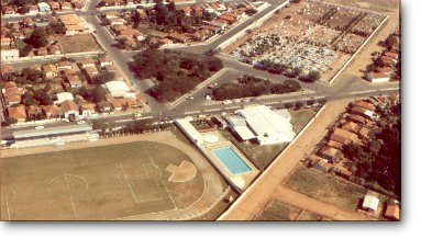 Em 1979, a rua de trás do nosso campo de futebol e lateral ao cemitério ainda não era asfaltada, e o cemitério, sempre visitado aos domingos, parece vazio aqui de cima.