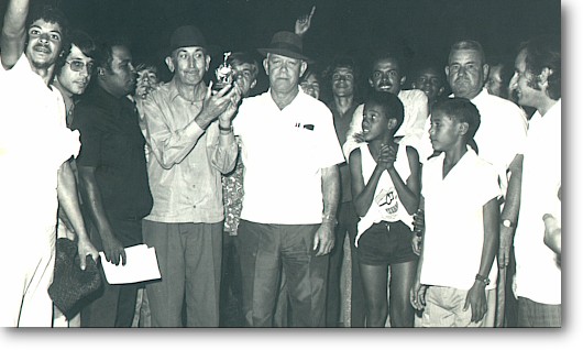 Sr. Eloy sempre participativo. No extremo esquerdo, com o braço levantado, o Otávio e de óculos o Negrãozinho, Tininho, Sr. Antonio Assaiante, Sr. Eloy Caldas, Dejair, Odair do Mané Baiano, Dito Lima e Zezinho Barbosa.